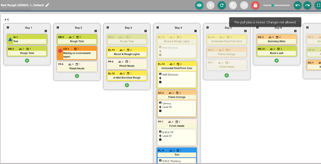 Going digital allows everyone to have access and complete transparency. That means that the foreman has the ability to preview everyone’s cards before the pull along with the power to actually visualize dependencies on cards. Best of all, you can adjust everything in real time so as you move stuff around, it keeps dependencies in mind. In other words, digital pull planning warns you if something breaks.